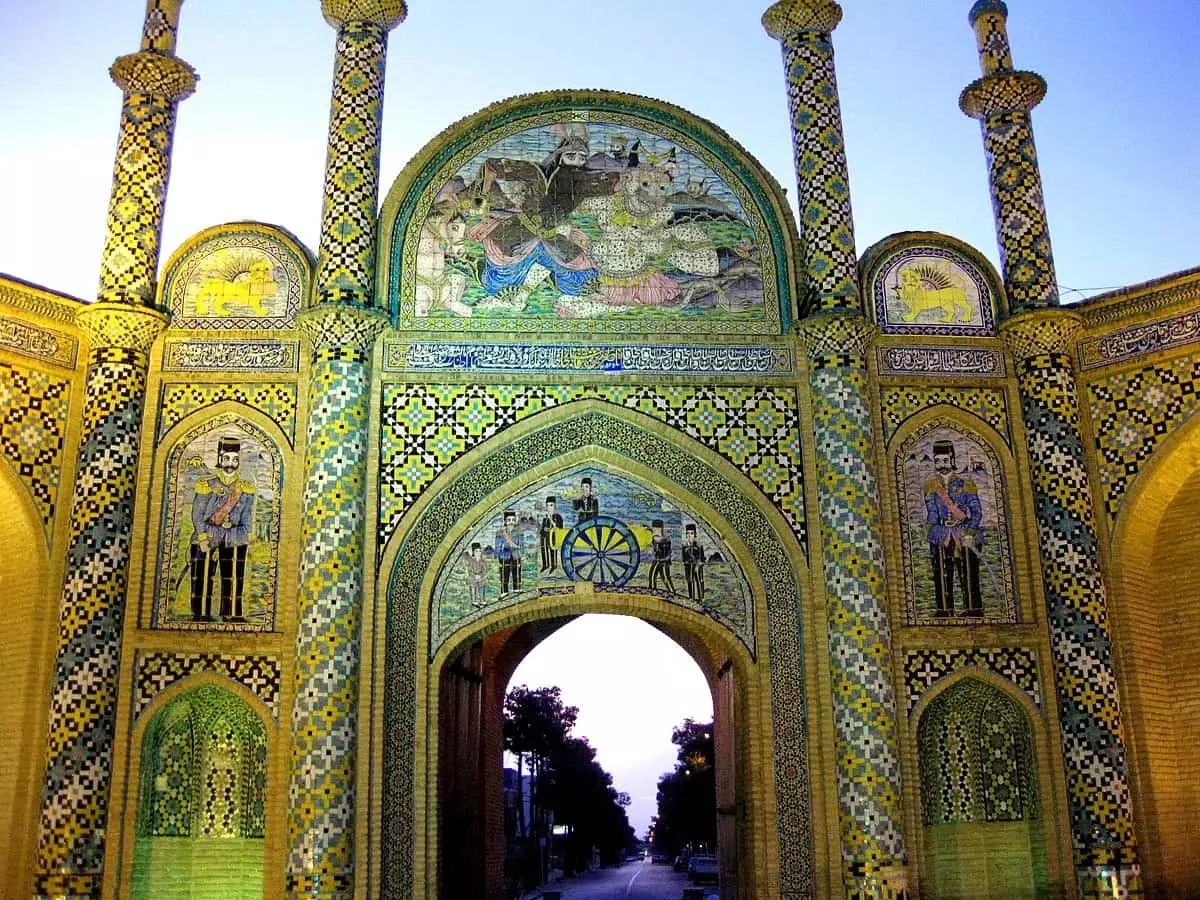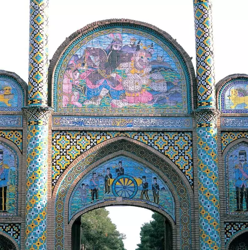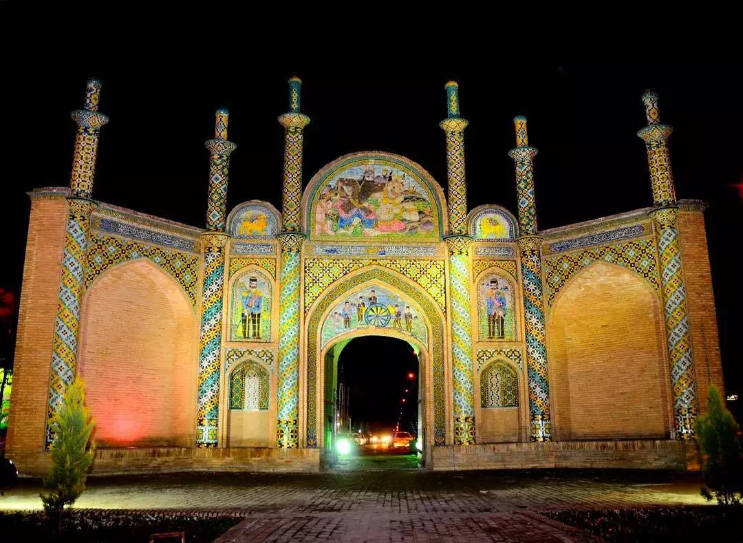 Il a été construit sous le règne de Naseroddin Shah. Les plafonds des pièces latérales et les plafonds de la salle principale sont en forme de dômes légèrement surélevés. L'un des chefs-d'œuvre de ce bâtiment historique est sa porte monumentale, au-dessus duquel est placé un panneau de tuiles avec sept couleurs montrant l'image mythique de la lutte contre le démon blanc Rostam, conçu de telle manière qui attire l'attention.